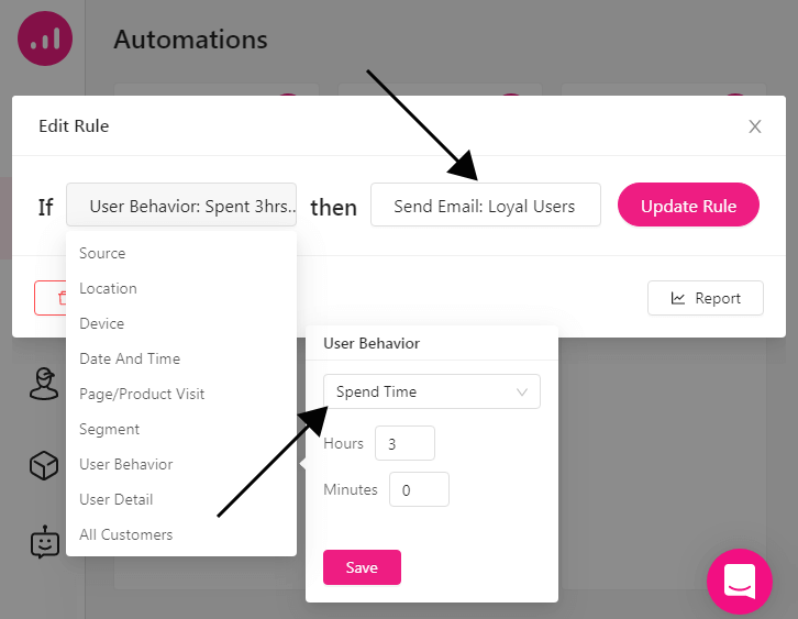 You can quickly locate high-value customers in Growmatik by setting User Behavior > Orders placed or Spent time as conditions on the automation dashboard. You can further customize any segment via the People section. Set the relevant Segment as the condition and Send Email as the action, then customize or create the email template.