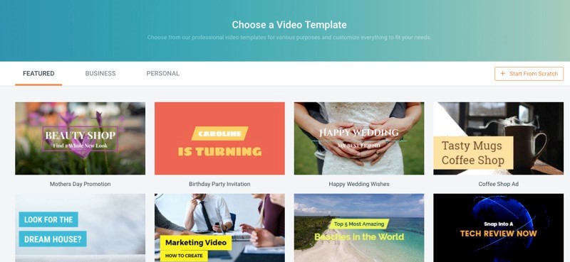 If you go to choose video templates, you will be presented in a variety of categories, from Business templates to Personal templates, and anything in between.